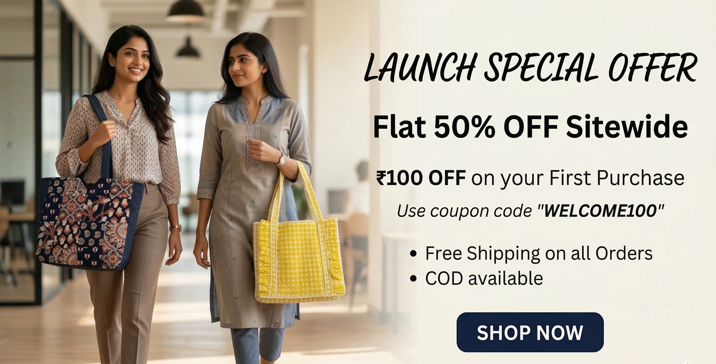 - Launch Special offer: Flat 50% OFF Sitewide